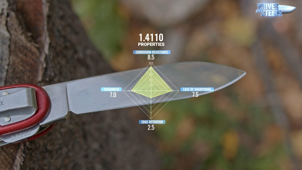 Comme toujours chez Victorinox, les outils sont en acier Inox 1.4110, très résistant à la corrosion et très résilient. Peu de risque de casse et la lame du couteau résistera bien aux ébréchures tout en étant facile à aiguiser.