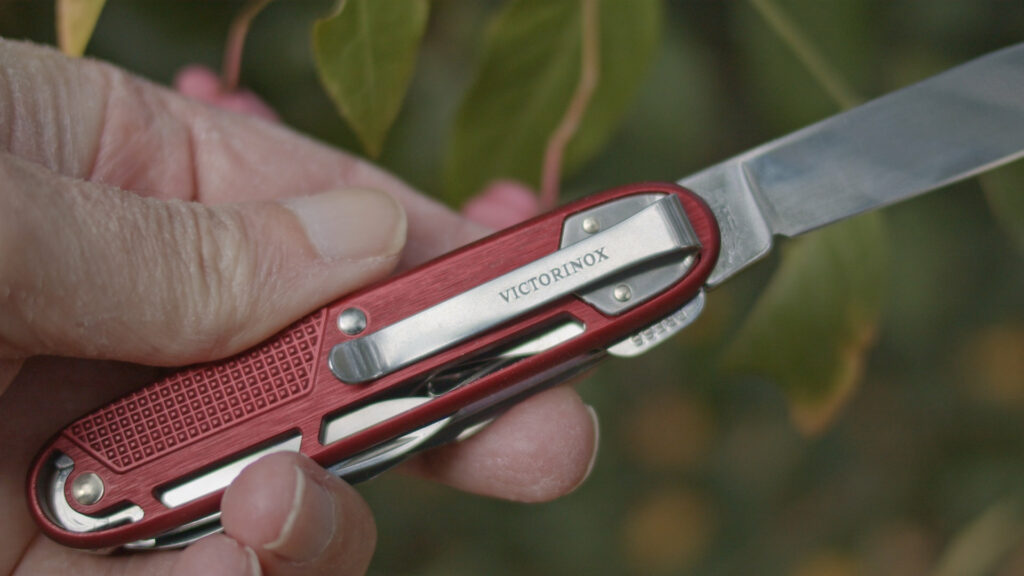 Sur ce modèle certains regretteront peut-être l’absence de pince à épiler qui est souvent très pratique pour se retirer une épine, voire une tique, ces petits parasites étant de plus en plus présents dans la nature.