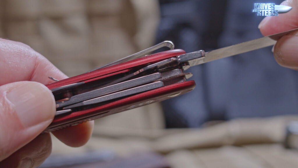 Sachez aussi qu’il faut pas mal forcer pour déplier les outils plus que sur d’autres couteaux suisses Victorinox. Donc attention également car devoir exercer une traction un peu importante c’est toujours un risque de moins contrôler son geste.